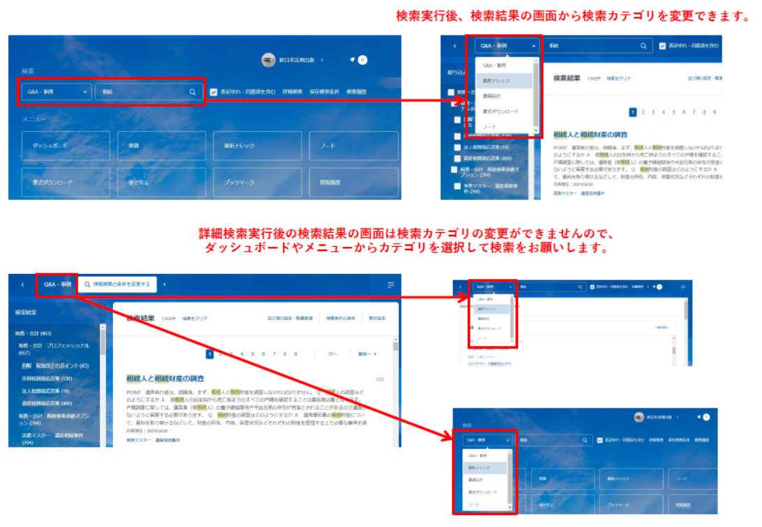 ご利用ガイドの見出し「検索結果一覧(Q&A・事例)」以下にも記載しています。