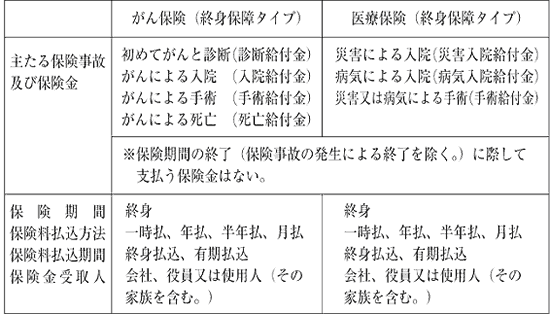 法人契約のがん保険(終身保障タイプ)及び医療保険(終身保障タイプ)の保険料の取扱い(以下、特にがん保険と医療保険とを区別しない限り、両者を総称したものを「がん保険」といいます。)については、次のとおり取り扱って差し支えありません。