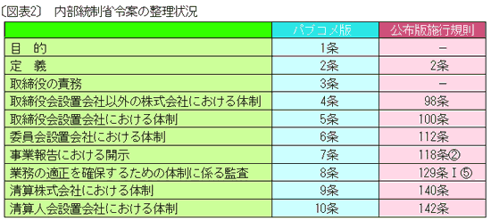 内部統制省令案の移動・整理状況は、図表2のとおりである。