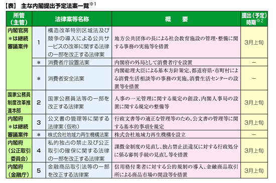 今国会の内閣提出予定法案から20法案の概要を一覧