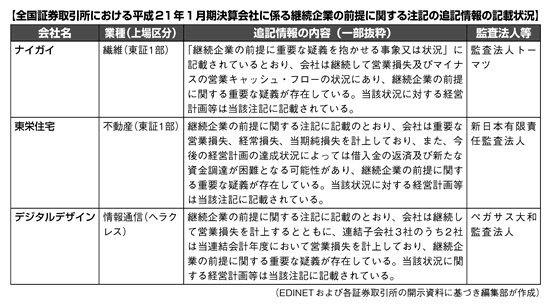 平成21年1月期のゴーイング・コンサーン注記は3社