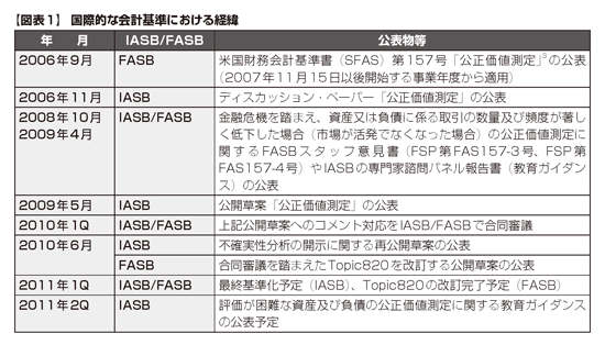 なお、本プロジェクトは金融危機を契機としたものではないものの、国際的な会計基準では、図表1のとおり、金融危機を踏まえた対応が行われており、ASBJの本公開草案もその内容を反映している。