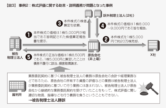 この点に関し原告会社は、被告税理士法人が業務委託契約に基づき原告会社から業務委託を受けているため、株式の評価について、原告会社に対し適切な助言・指導・説明などを行う義務があったと主張した。