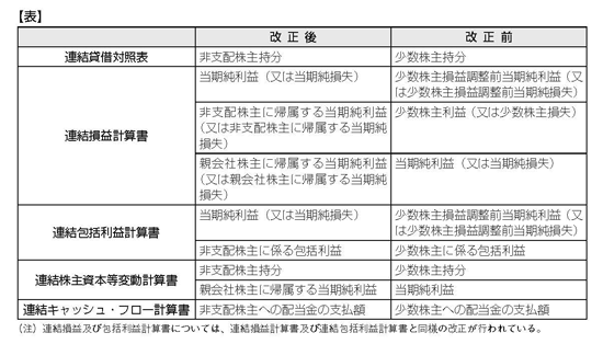 (3)共通支配下の取引等の注記 共通支配下の取引等の注記については、非支配株主との取引に係る連結財務諸表提出会社の持分変動に関する事項の記載が求められることとなった(連結財規第15条の14第1項第4号)。