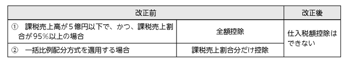 現行法では、居住用の賃貸物件であっても、下表の①又は②に該当する場合には仕入税額控除が認められているところであるが、本年度の改正により、居住用賃貸物件の取得時における仕入税額控除はシャットアウトされることになった。