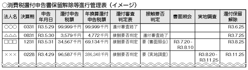 消費税還付審査の進捗状況はどのように管理されますか?