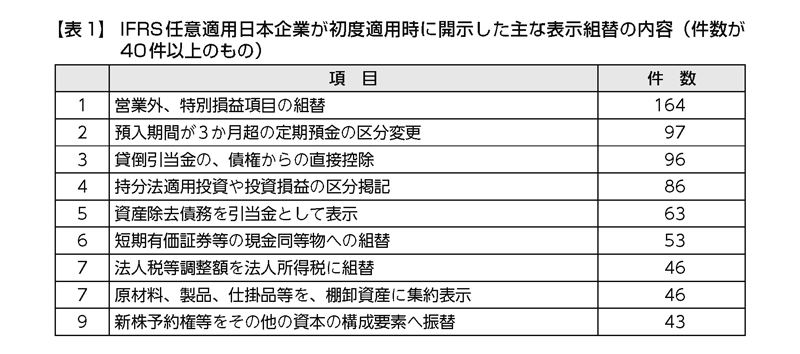 IFRS任意適用日本企業が初度適用時に開示した主な表示組替の内容