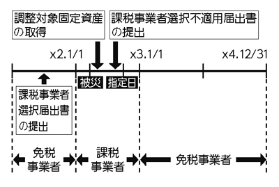 【具体例】課税事業者を選択した個人事業者が、「課税事業者選択不適用届出書」を提出した後に調整対象固定資産を取得した場合