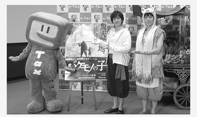 東京国税局管内の麹町税務署は1月17日、劇団四季の四季劇場[秋](東京都港区)でミュージカル『バケモノの子』出演キャストによる、スマートフォンを使った確定申告の体験イベントを開催した。イベントでは俳優の立りす崇なおとさんと、笠松哲朗さんが、スマートフォンのカメラを使って、給与所得の源泉徴収票を読み取り自動入力する体験を行った。