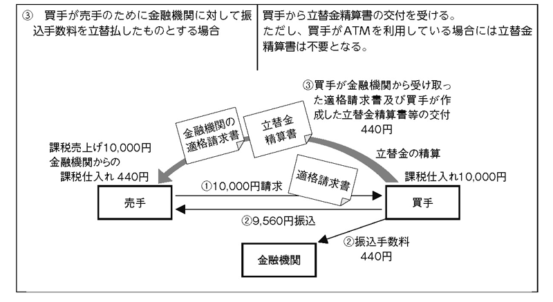 売手負担の振込手数料を支払手数料として処理した場合であっても、消費税法上は「対価の返還等」として取り扱うことが認められる。この場合、帳簿に法定事項を記載して保存する必要があるとともに、その支払手数料として処理した振込手数料を消費税のコード表や消費税申告の際に作成する帳票等により明らかにしておくなどの対応が必要になる。