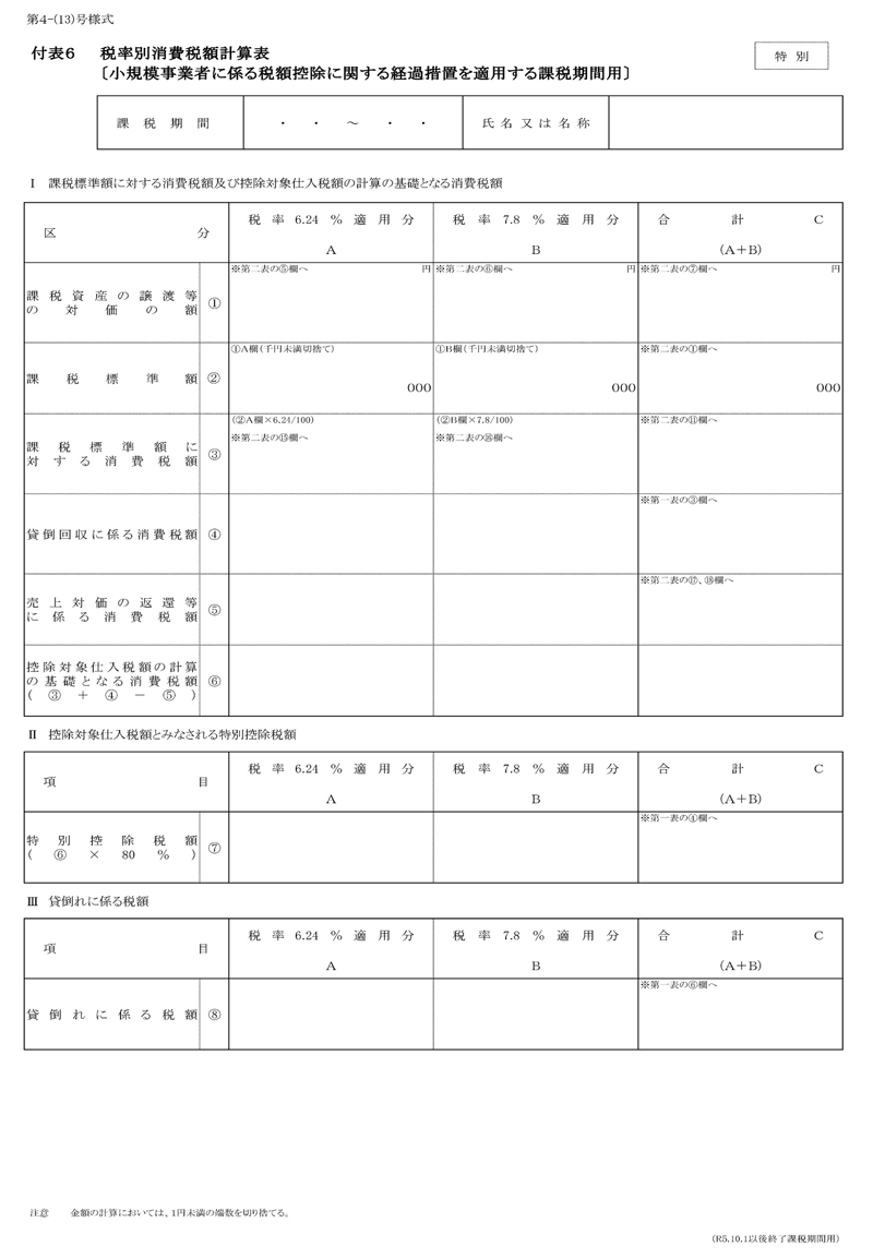 「2割特例」の適用を受けようとする場合には、確定申告書にその旨付記するとともに、「付表6」の添付が義務付けられている(22頁参照)。