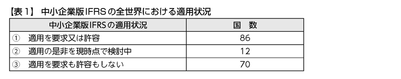 完全版IFRSを適用する日本企業の数が、増加のペースはやや落ちているとはいえ、国際的な大企業を中心に着実に増加しているのに対して、中小企業版IFRSの適用は、我が国においてはたとえ任意適用であっても許容されていないのが現状である。このためわが国では、完全版IFRSに比べると中小企業版IFRSは影が薄く、取り上げられる機会も極めて少ない。ただ、世界に目を転じると、発展途上国を中心にではあるが、86カ国が中小企業版IFRSの適用を要求又は許容している。86カ国という数の多寡については評価が分かれるかもしれないが、グローバルな会計基準の世界で、中小企業版IFRSが一定の地位を占めていることは確かであろう。