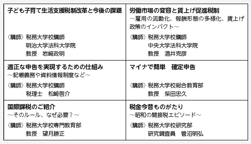 税務大学校は「税を考える週間」にあわせて、公開講座をオンライン配信で開催する。期間は11月8日(金)8時30分から29日(金)17時までの間で、期間中であればいつでも受講可能となっている。大学教授および税務大学校職員等を講師に迎え、「労働市場の変容と賃上げ促進税制」など、全部で6講座を予定しており、1講座から受講できる。受講料は無料だが、税務大学校ホームページにて事前に申し込む必要がある。