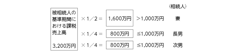 ②平成21年(基準期間)における被相続人の課税売上高に法定相続分割合を乗じた金額により判定する。