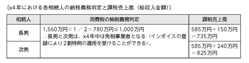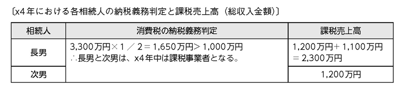 〔x4年における各相続人の納税義務判定と課税売上高(総収入金額)〕