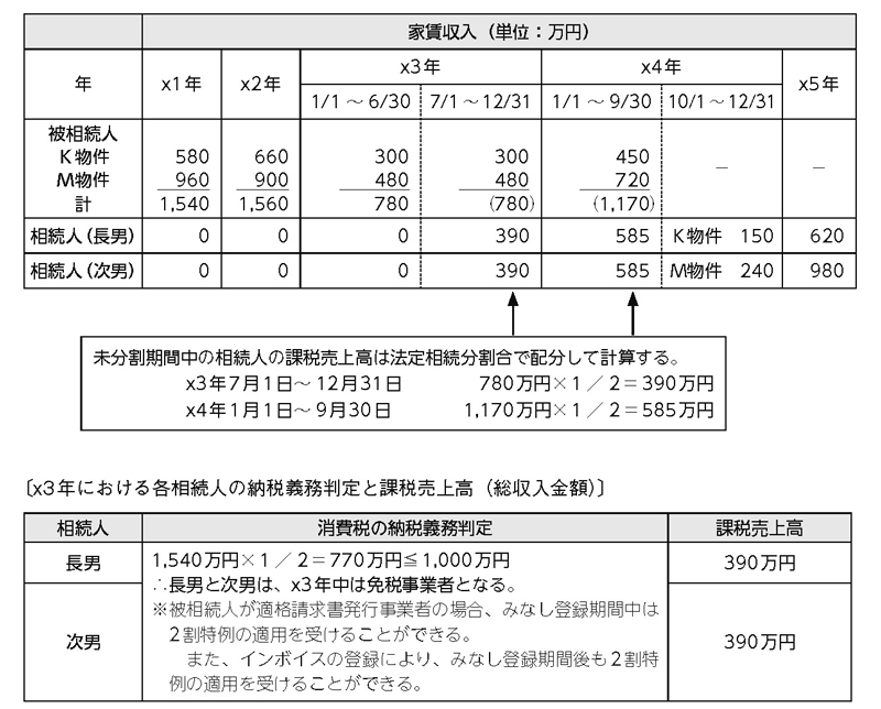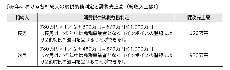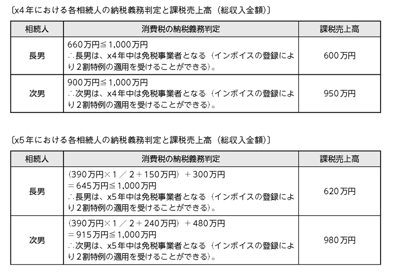 〔x5年における各相続人の納税義務判定と課税売上高(総収入金額)〕
