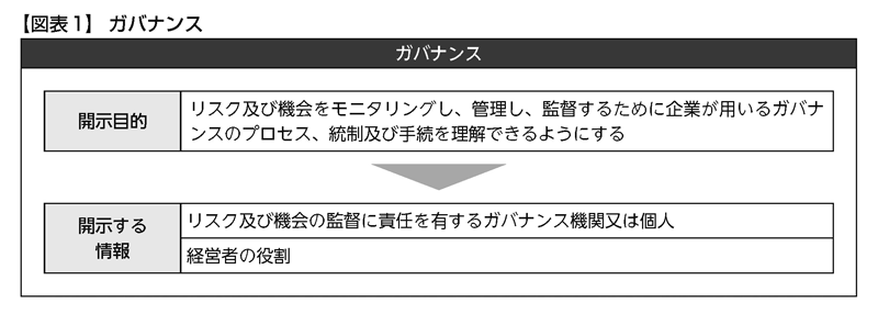 ガバナンスに関するサステナビリティ関連財務開示の目的は、サステナビリティ関連のリスク及び機会をモニタリングし、管理し、監督するために企業が用いるガバナンスのプロセス、統制及び手続を理解できるようにすることにある(第8項)。