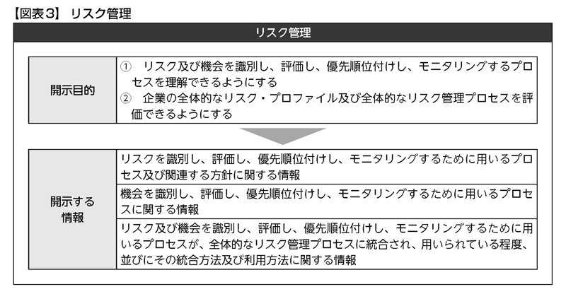 (3)サステナビリティ関連のリスク及び機会を識別し、評価し、優先順位付けし、モニタリングするために用いるプロセスが、全体的なリスク管理プロセスに統合され、用いられている程度、並びにその統合方法及び利用方法に関する情報