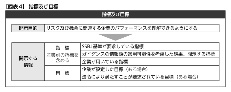 指標及び目標に関するサステナビリティ関連財務開示の目的は、サステナビリティ関連のリスク及び機会に関連する企業のパフォーマンスを理解できるようにすることにある(第30項)。