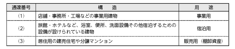 具体的には、建物の一部が店舗用の構造等となっている居住用賃貸建物などについて、使用面積割合や使用面積に対する建設原価の割合など、その建物の実態に応じた合理的な基準により区分することになる(消基通11−7−3)。