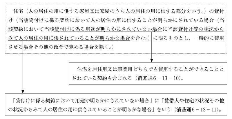 住宅(人の居住の用に供する家屋又は家屋のうち人の居住の用に供する部分をいう。)の貸付け(当該貸付けに係る契約において人の居住の用に供することが明らかにされている場合(当該契約において当該貸付けに係る用途が明らかにされていない場合に当該貸付け等の状況からみて人の居住の用に供されていることが明らかな場合を含む。)に限るものとし、一時的に使用させる場合その他の政令で定める場合を除く。)