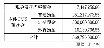 このうち、現金及び当座預金の合計744万7259.9米ドルは、①オートスイープの対象であるC社シティバンク銀行口座に預けられていたもの(494万2900米ドル)と、②C社が主として米国外の市中銀行に有している口座に米ドル以外の通貨建てで預けられていたものとに大別される。(甲122)