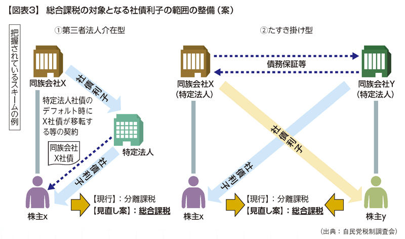 第三者の特定法人からの社債利子を総合課税の対象に追加へ
