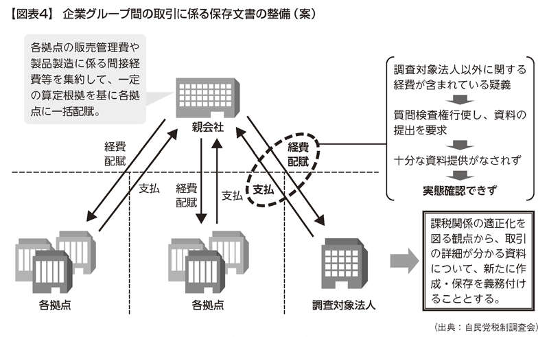 このため、企業グループ内の法人との間で一定の取引を行った場合には、支払を行う法人の法人税の課税所得の計算上保存が義務付けられている書類等にその取引に関する資産又は役務の提供の明細、その取引における支払金額の計算の明細及びその取引に係る支払金額を算定するために必要な事項の記載等がないときは、これらの事項を明らかにする書類等を取得・作成し、保存することを義務付けることとしている。