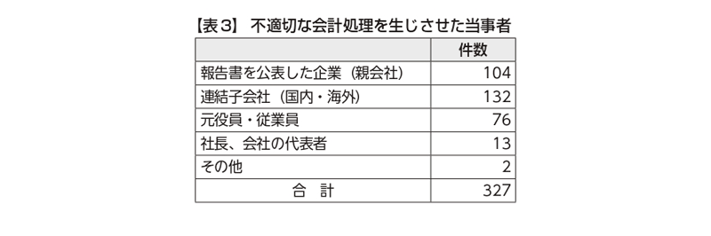 不適切な会計処理を生じさせた当事者を分類すると、表3のとおりであった。