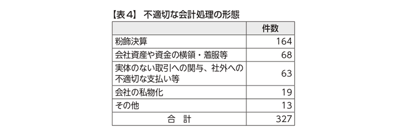 次に、不適切な会計処理を形態別に分類すると、表4のとおりとなった。
