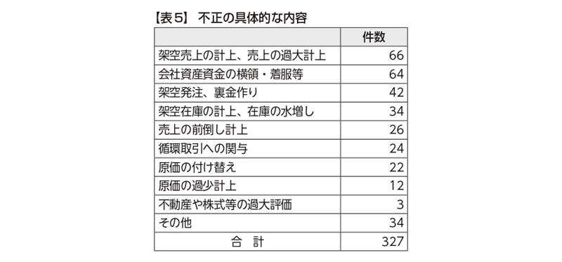 さらに、不正の具体的な内容を分類すると、表5のとおりであった。