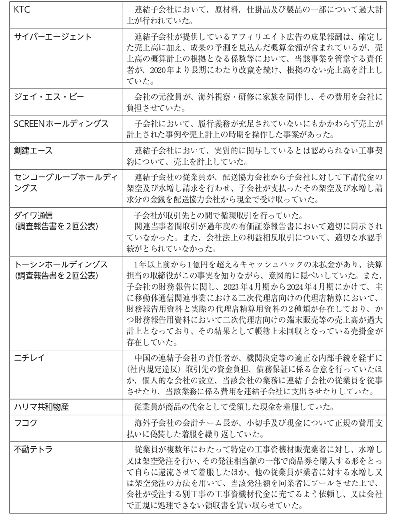 2025年に調査報告書が公表された不適切な会計処理の事例