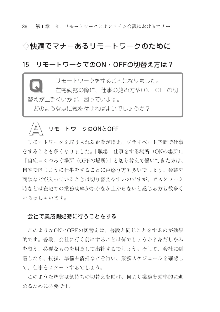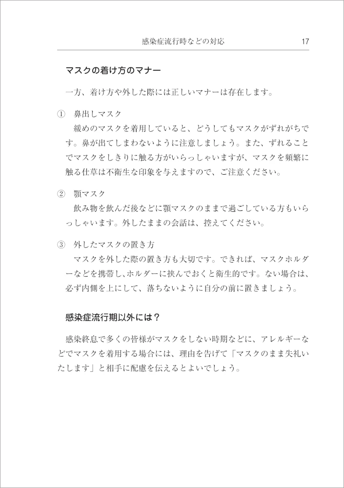◆オフィス出勤、在宅勤務、顧客対応、会食・冠婚葬祭など、様々なシーンで心掛けたいマナーを解説しています。