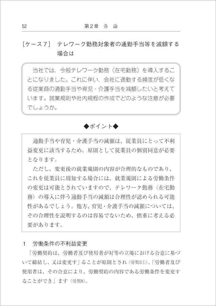 [ケース7] テレワーク勤務対象者の通勤手当等を減額する場合は