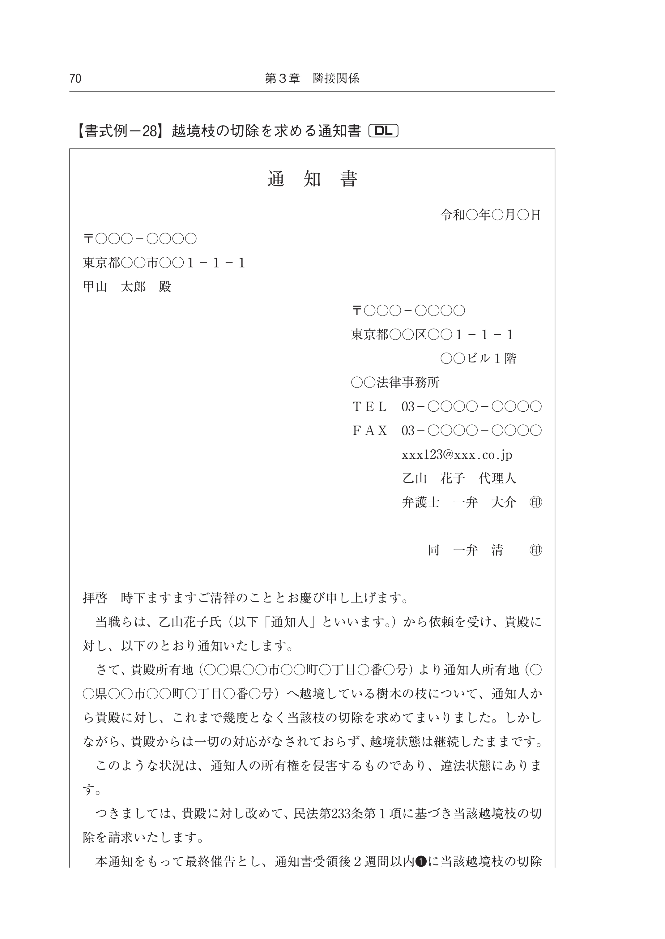 【書式例-28】 越境枝の切除を求める通知書 DL