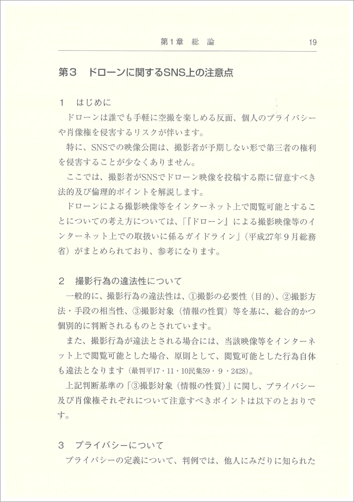 ◆ドローンで撮影した映像の肖像権やプライバシー保護など、SNSに対応した問題も取り上げています。