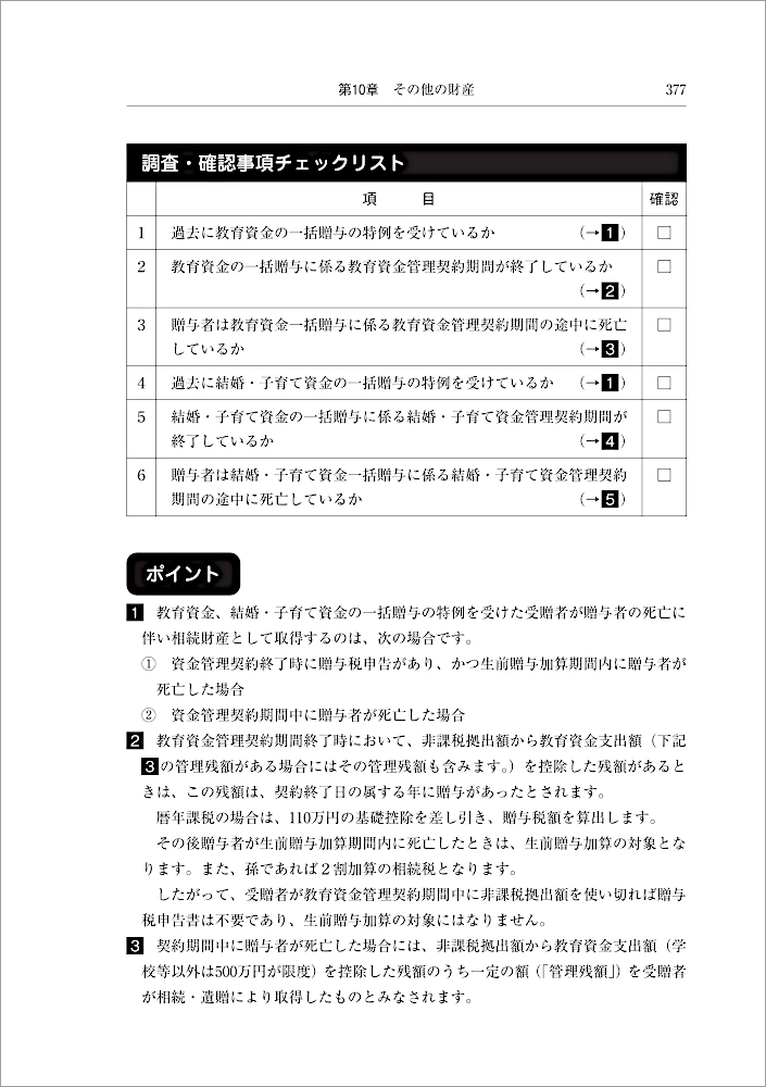 ◆相続財産ごとに確認事項や収集資料をチェックリストで簡潔に示していますので、漏れのない確認が簡単にできます。