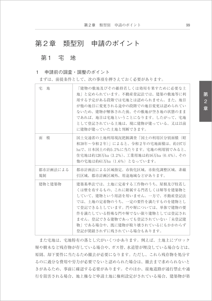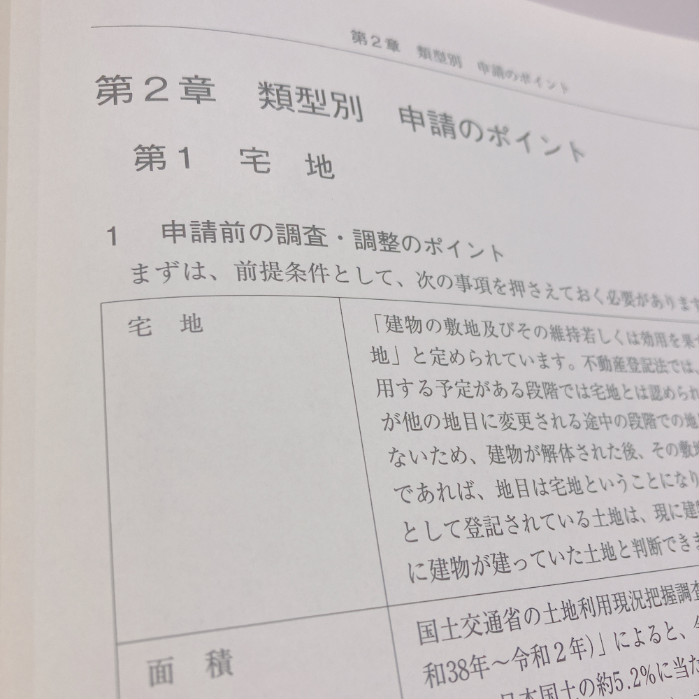 ◆宅地、農地、森林等、土地の類型別に申請上の問題点を整理しています。