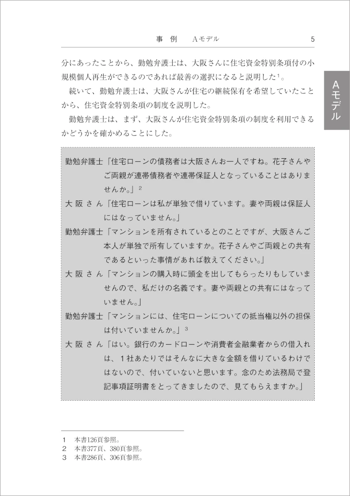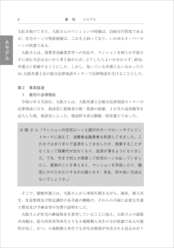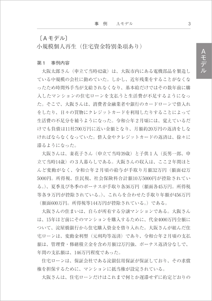 個人再生手続の開始から終了までを、個人債務者のモデルごとにストーリー展開でわかりやすく解説し、各モデルには、事例に対応した書式を記載例入りで豊富に収載しています。
